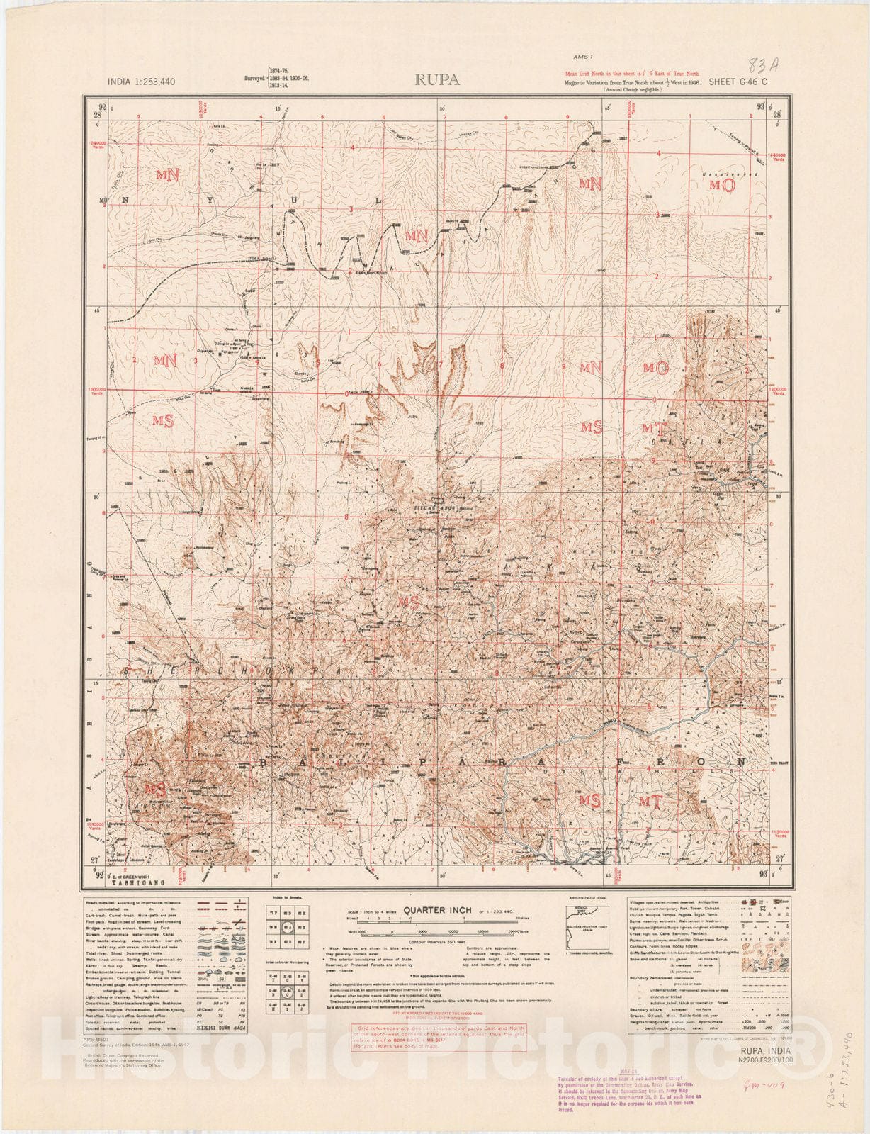 Map : India 1:253,440 Rupa, 83 A 1951, India 1:253,440, Antique Vintage Reproduction