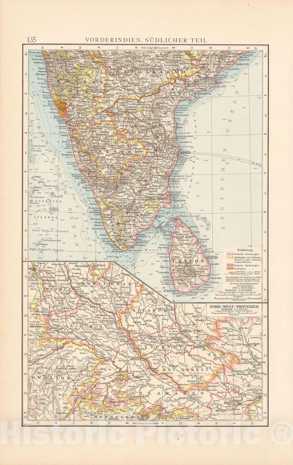 Historic Map : India 1899 , Andrees Allgemeiner Handatlas , Vintage Wall Art