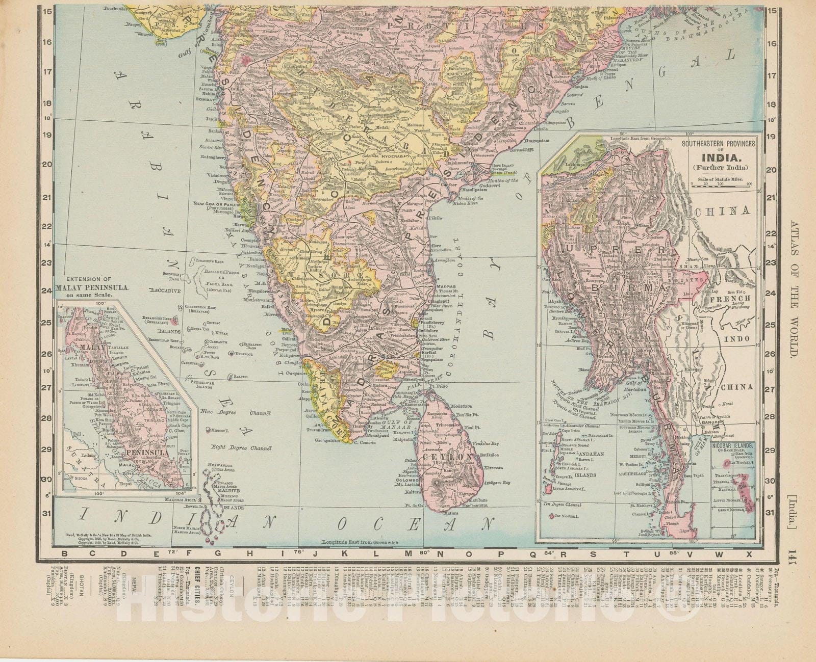 Historic Map : India 1900 , Universal Atlas World , v2, Vintage Wall Art