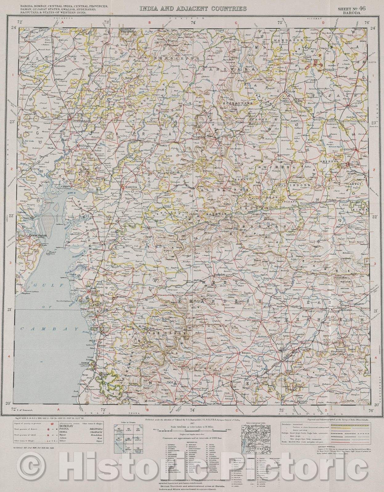 Historic Map : India and adjacent countries, 1936 , Vintage Wall Art