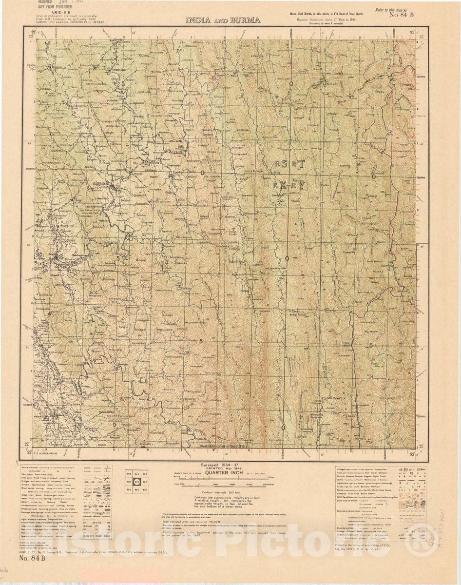 Map : India and Burma No. 84 B1943, India 1:253,440, Antique Vintage Reproduction