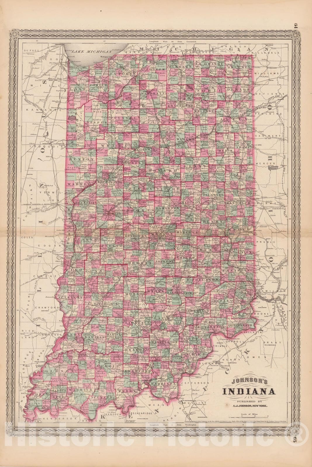Historic Map : Indiana 1873 , Family Atlas World , Vintage Wall Art