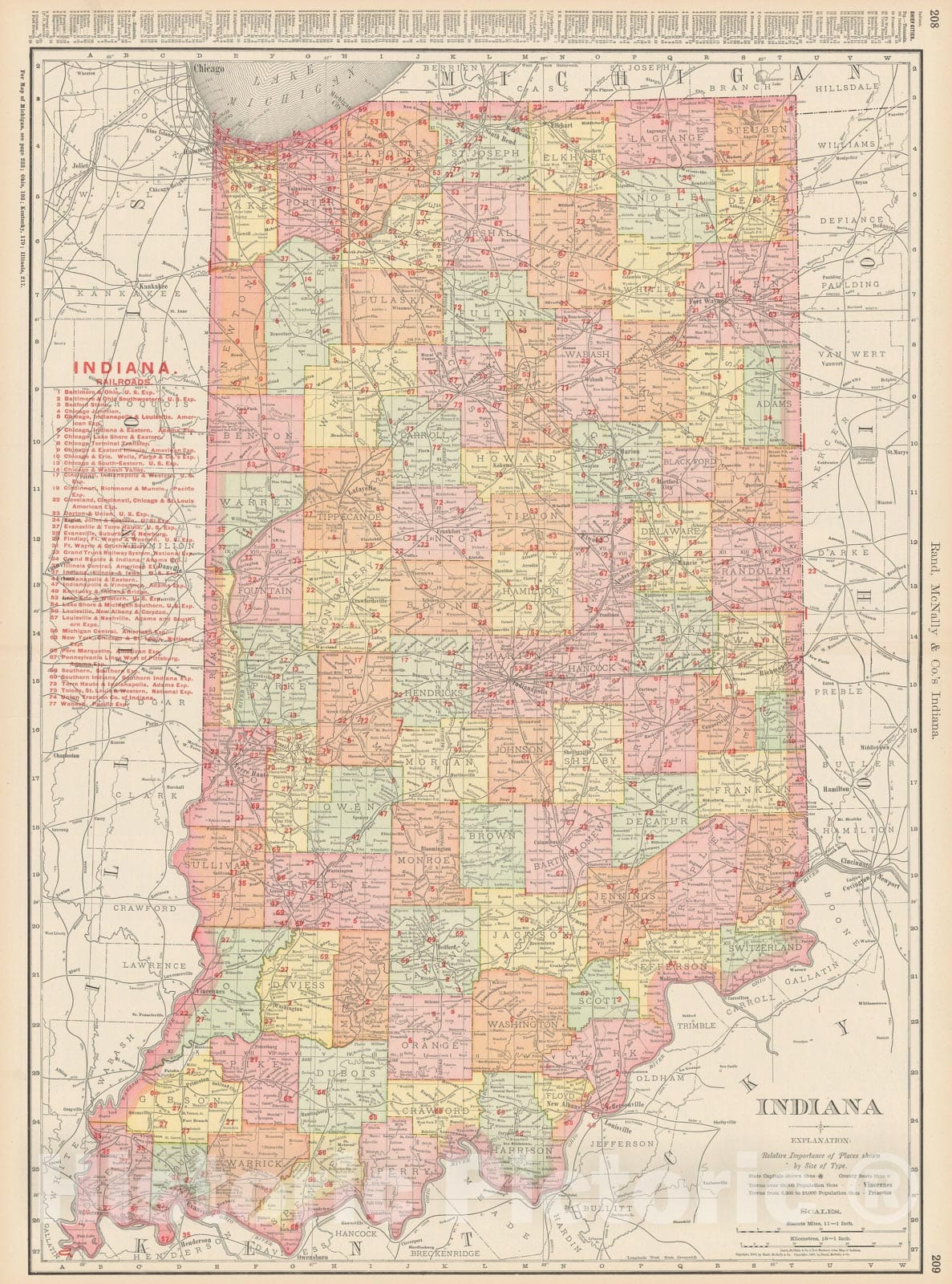 Historic Map : Indiana 1903 , Rand McNally Business Atlas , Vintage Wall Art