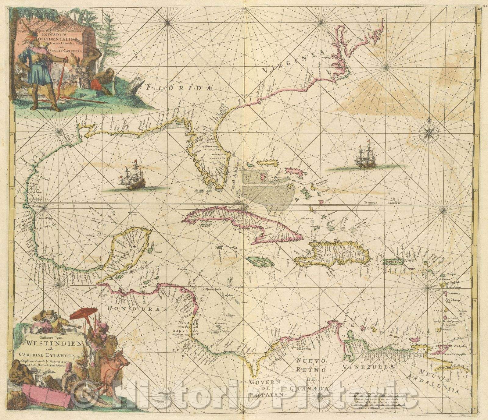 Historic Map : Indiarum occidentalium tractus littorales cum insulis Caribicis., 1680 , Vintage Wall Art