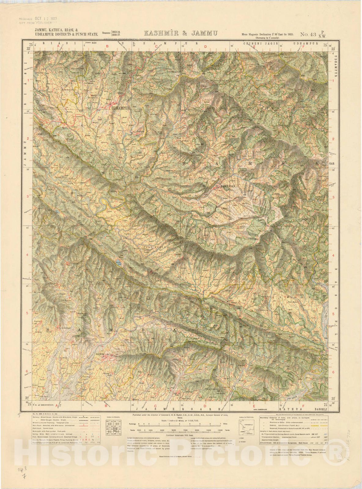 Map : Jammu, Kathua, Riasi & Udhampur Districts & Punch State, Kashmir & Jammu, No. 43 P/N.W. 1922, India 1:126,720, Antique Vintage Reproduction