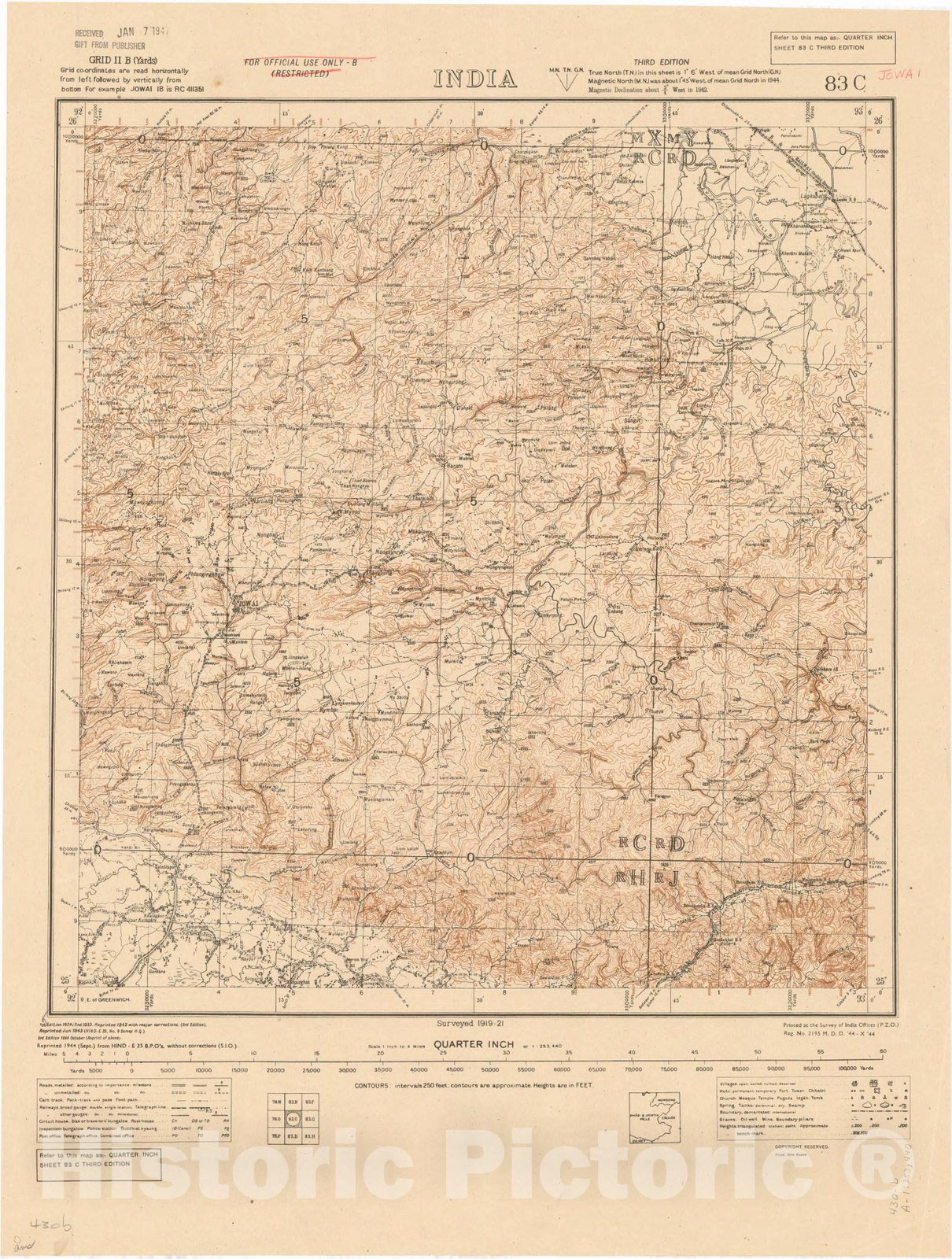 • .Map : Jowai, India 83 C 1942, India 1:253,440, Antique Vintage Reproduction