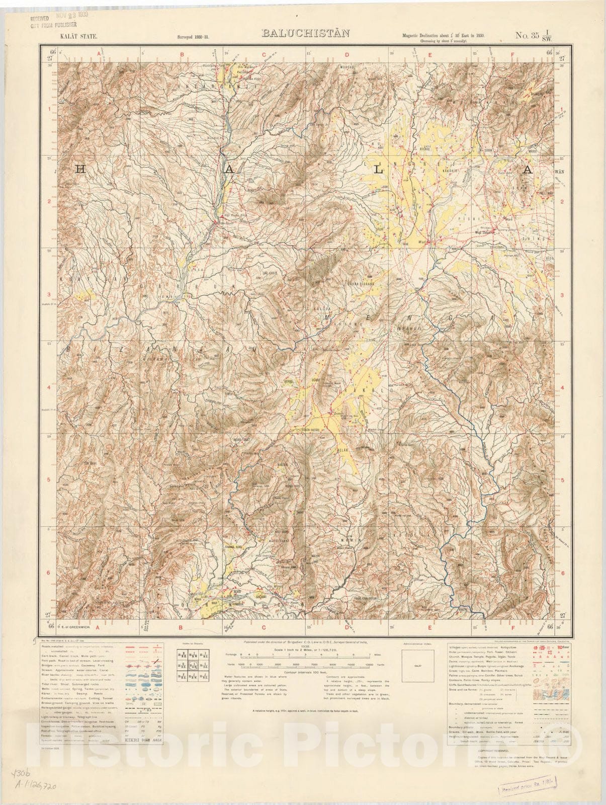 Map : Kalat State, Baluchistan, No. 35 I/S.W. 1938, India and adjacent countries, Antique Vintage Reproduction