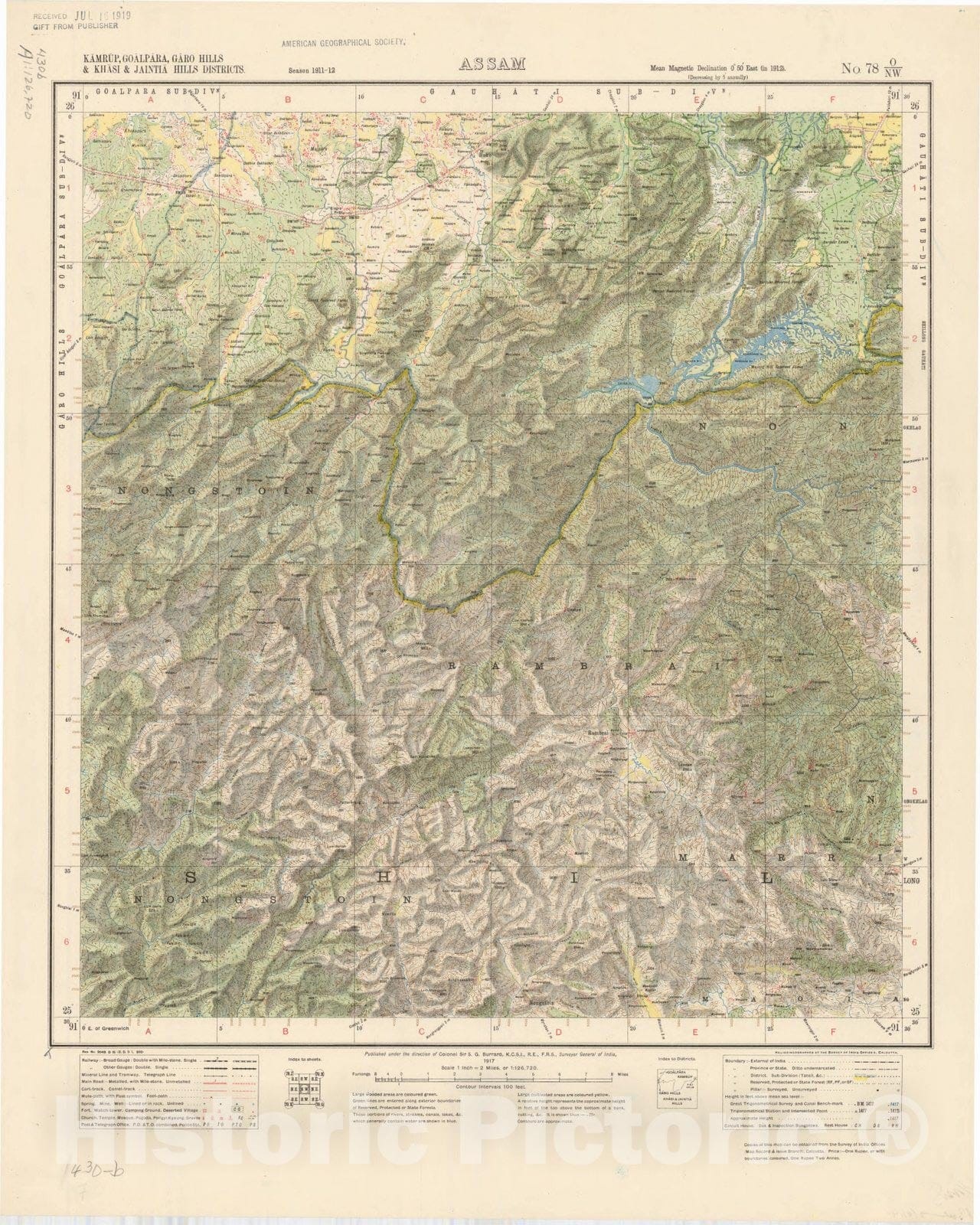 • .Map : Kamrup, Goalpara, Garo Hills & Khasi & Jaintia Hills Districts, Assam, No. 78 O/N.W. 1917, India and adjacent countries, Antique Vintage Reproduction
