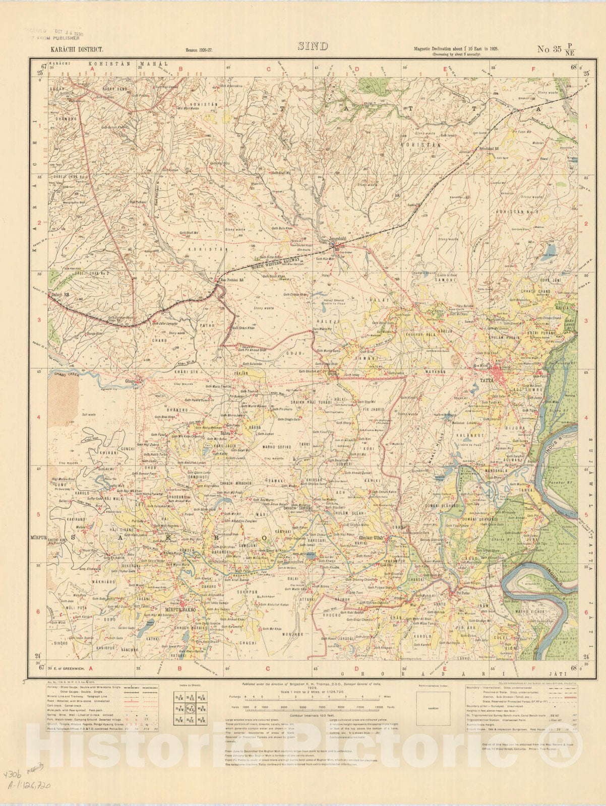 • .Map : Karachi District, Sind, No. 35 P/N.E. 1929, India and adjacent countries, Antique Vintage Reproduction