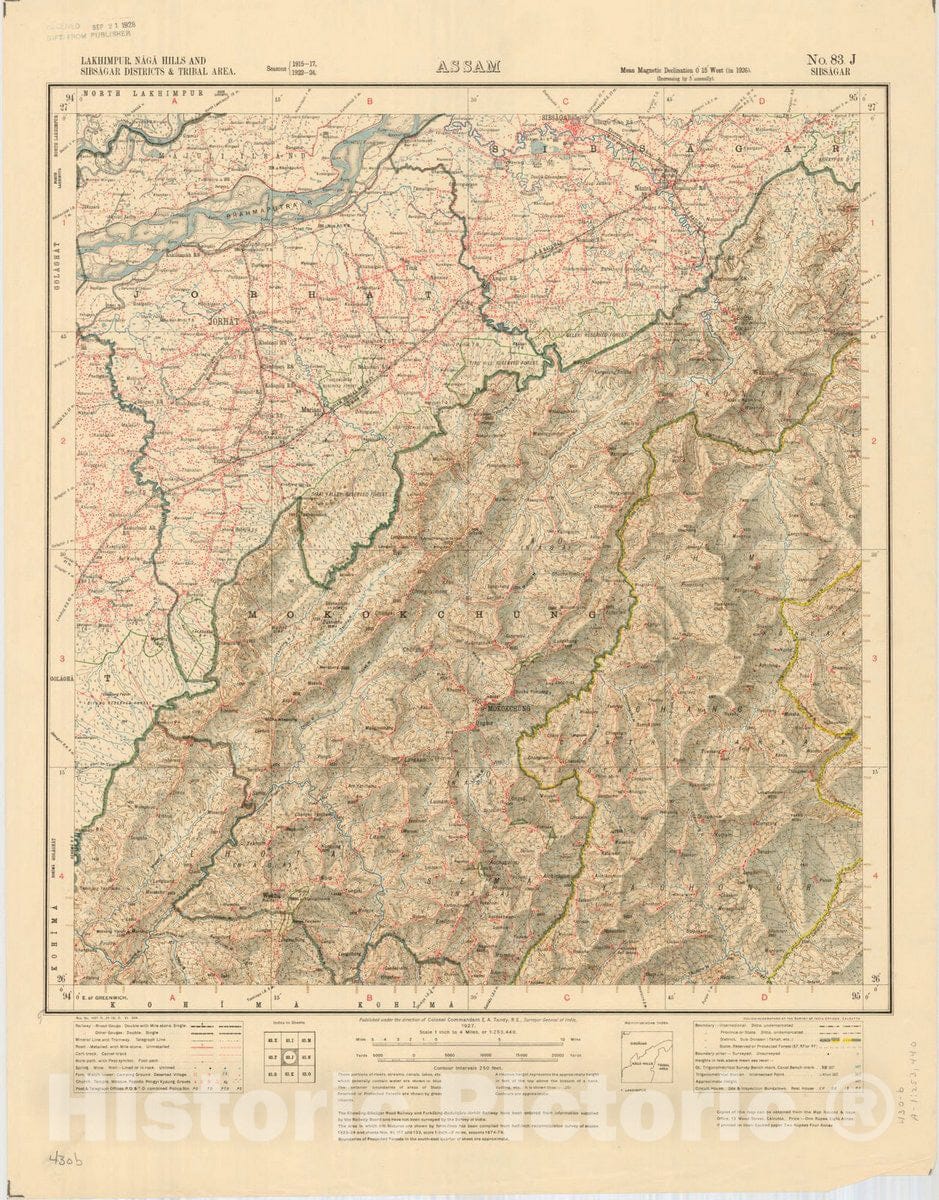 Map : Lakhimpur, Naga Hills and Sibsagar Districts & Tribal area, Assam No. 83 J Sibsagar 1927, India 1:253,440, Antique Vintage Reproduction