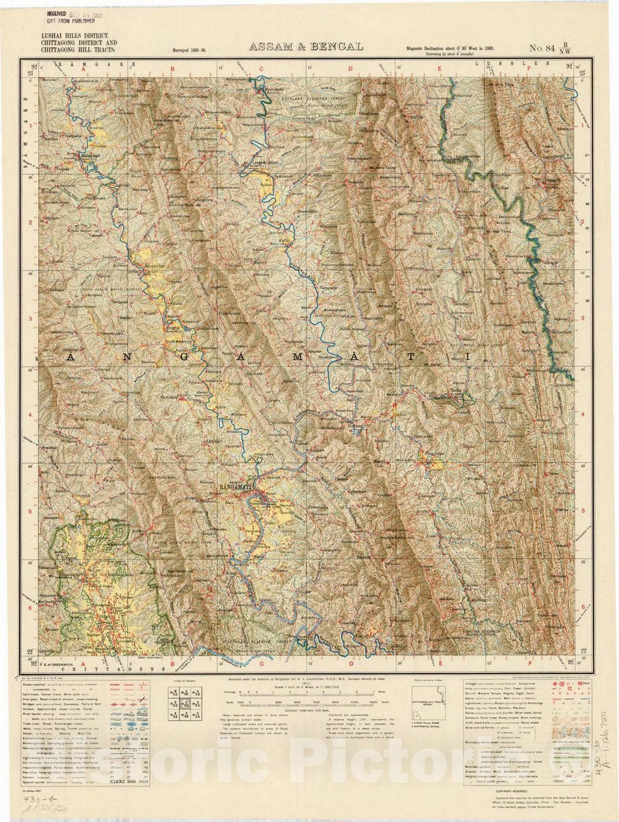 Historic Map : Lushai Hills District. Chittagong District and Chittagong Hill Tracts. Assam & Bengal No. 84 B/N.W. 1937, India and adjacent countries, Antique Vintage Reproduction