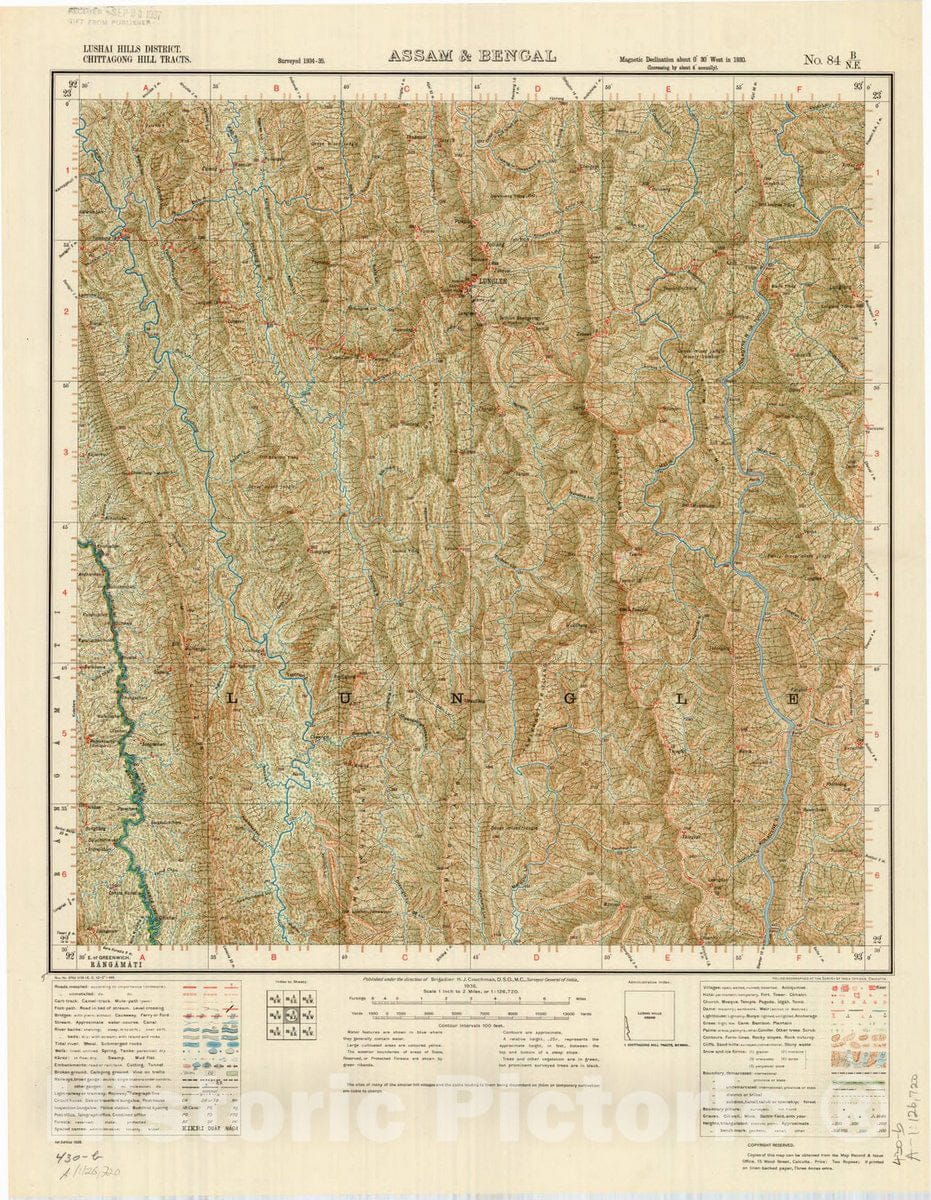 Map : Lushai Hills District, Chittagong Hll Tracts, Assam & Bengal No. 84 B/N.E. 1936, India and adjacent countries, Antique Vintage Reproduction