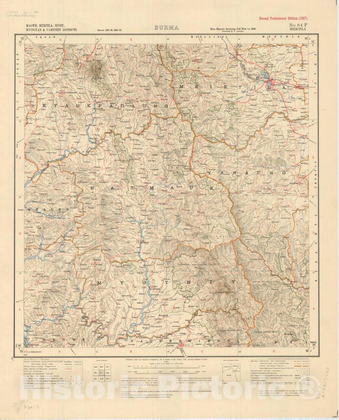 • Map : Magwe, Meiktila, Minbu, Myingyan & Yamethin Districts, Burma, No. 84 P Meiktila 1927, India 1:253,440, Antique Vintage Reproduction