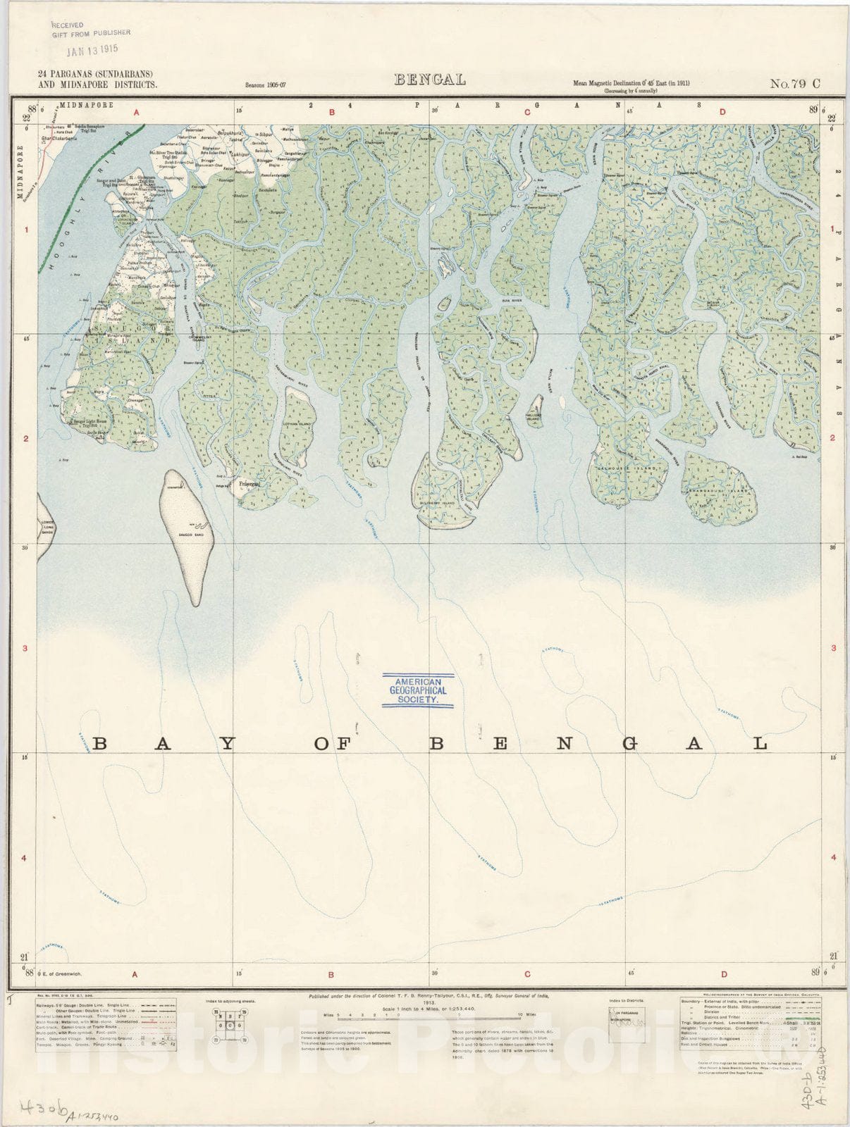 India 1:253,440. 24 Parganas (Sundarbans) and Midnapore Districts, Bengal No. 79 C 1913
