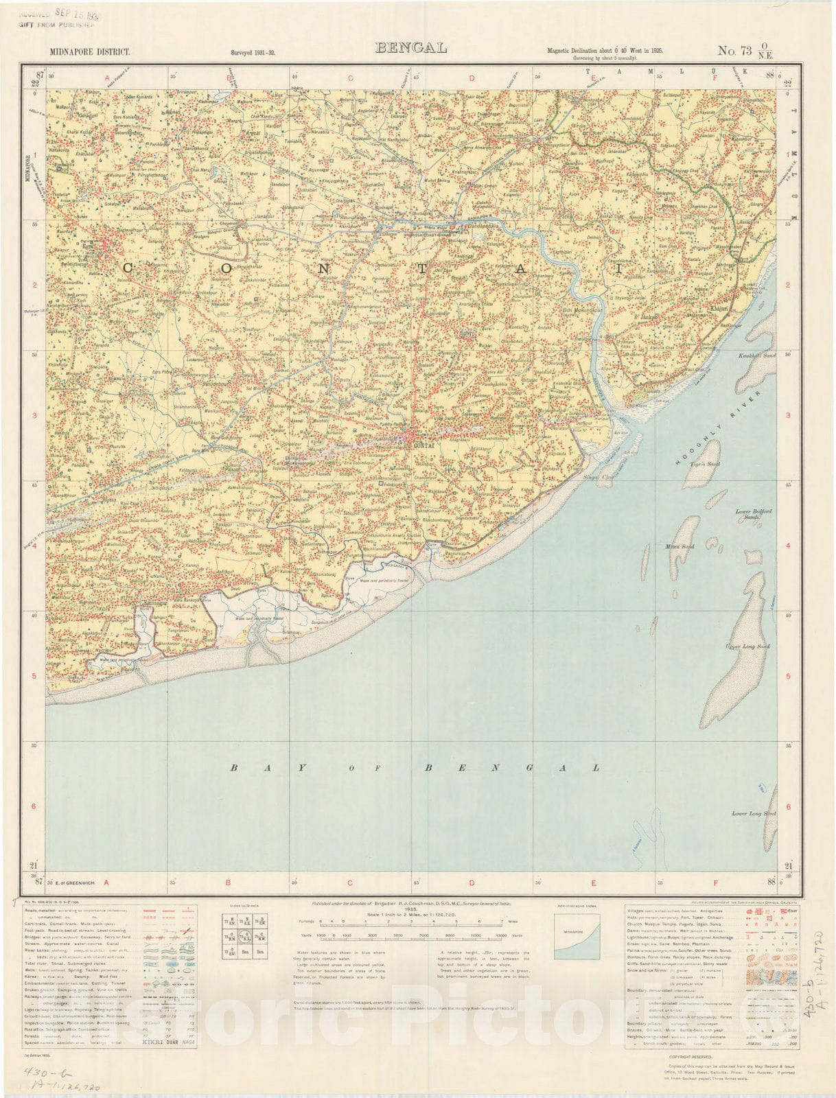 • .Map : Midnaport District, Bengal, no. 73 O/N.E. 1934, India and adjacent countries, Antique Vintage Reproduction