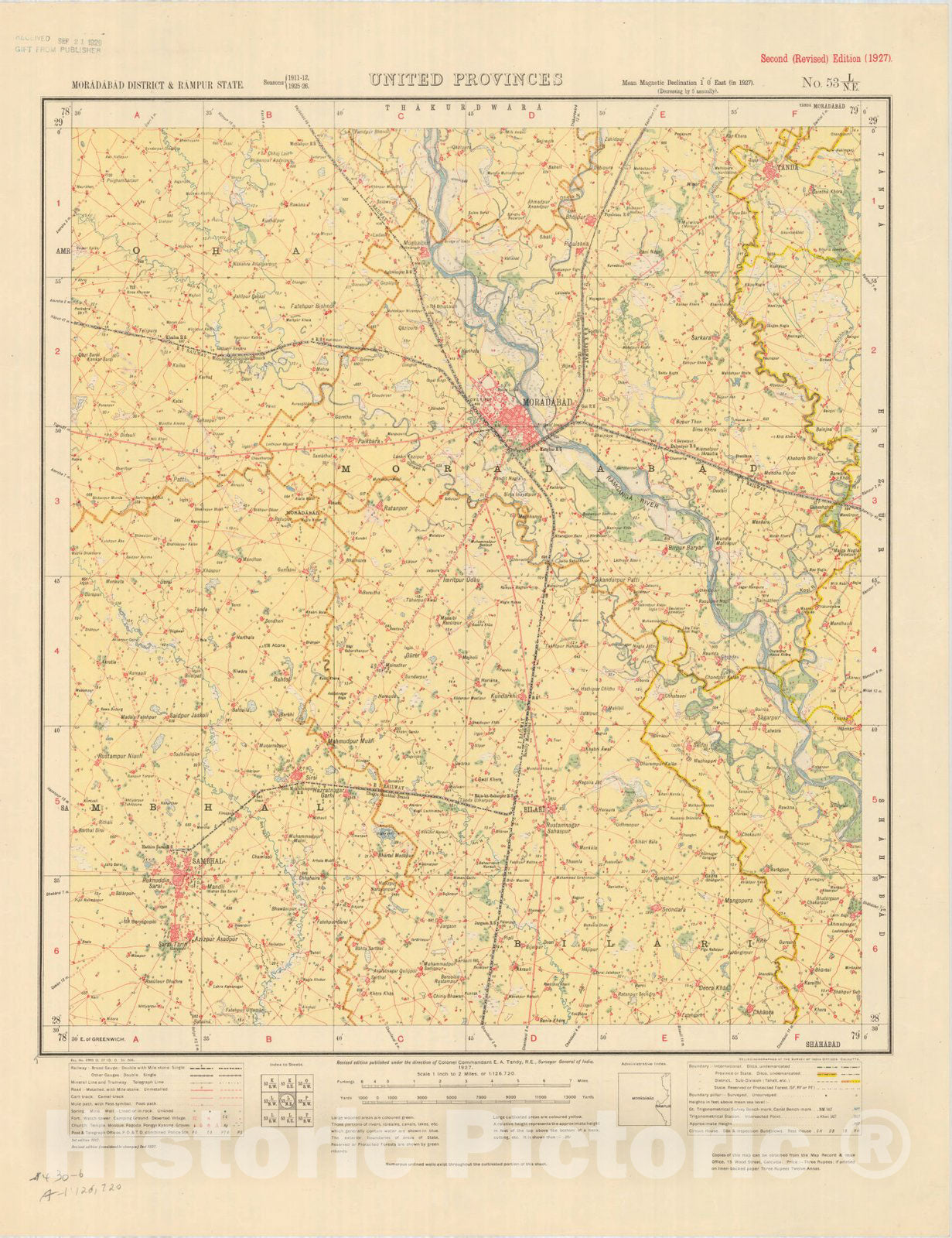 Map : Moradabad District & Rampur State, United Provinces, No. 53 L/N.E. 1927, India and adjacent countries, Antique Vintage Reproduction