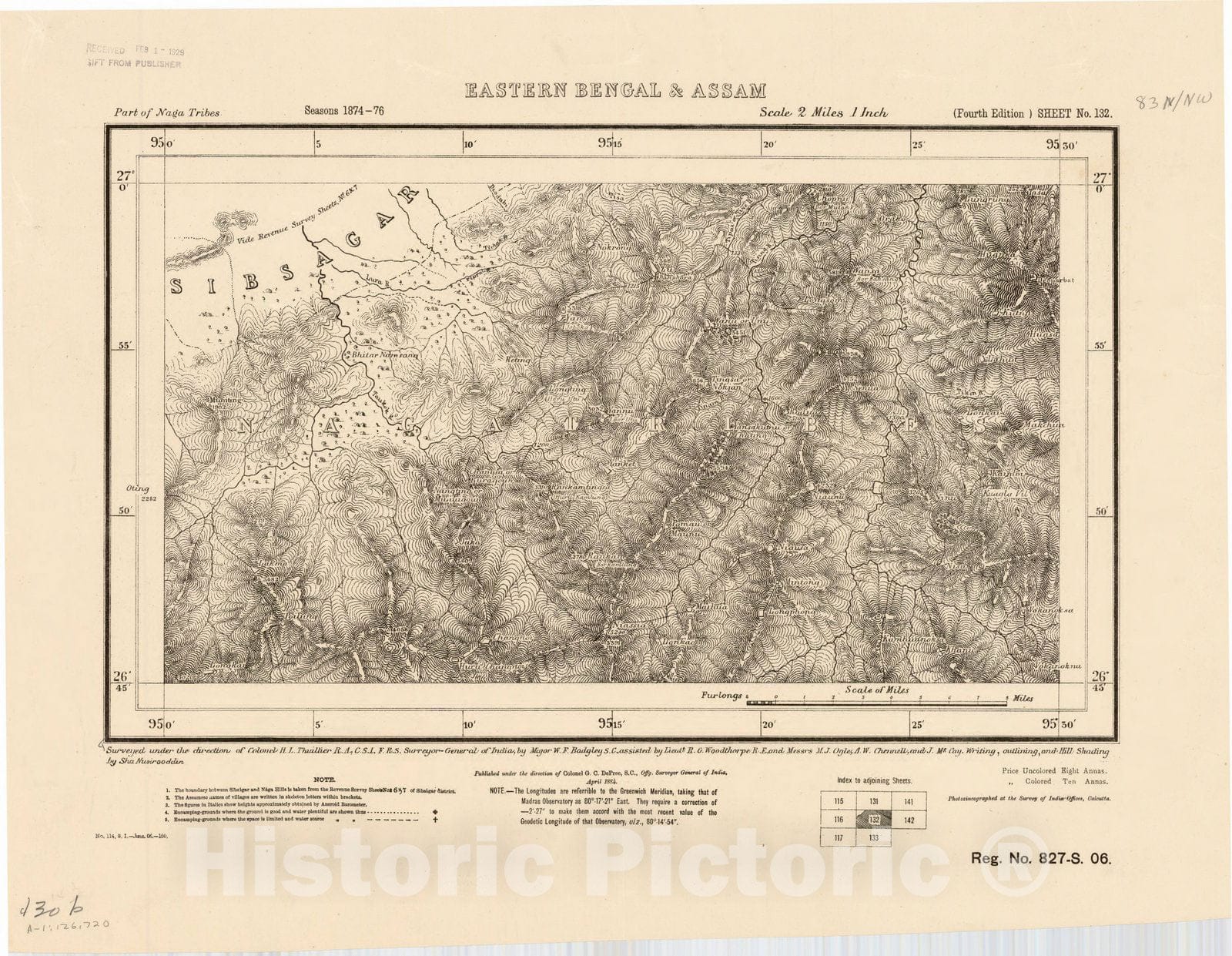 • .Map : Part of Naga Tribes, eastern Bengal & Assam, sheet no. 132 [83 N/N.W.] 1906, India and adjacent countries, Antique Vintage Reproduction
