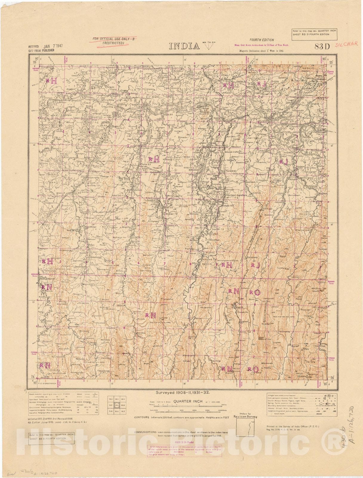 Map : Silchar, India 83 D 1943, India 1:253,440, Antique Vintage Reproduction