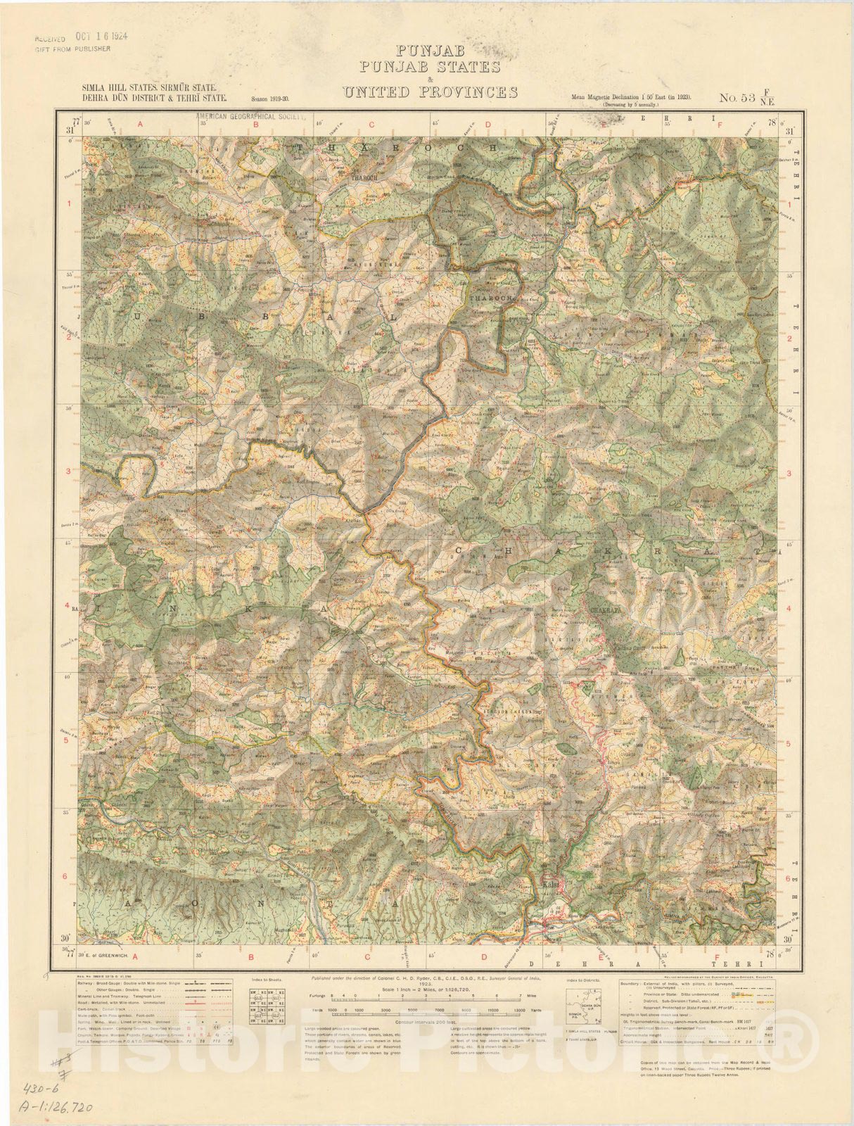 Map : Simla Hill States, Sirmur State, Dehra Dun District & Tehri State, Punjab, Punjab States & United Provinces, No. 53 F/N.E. 1923, India and adjacent countries