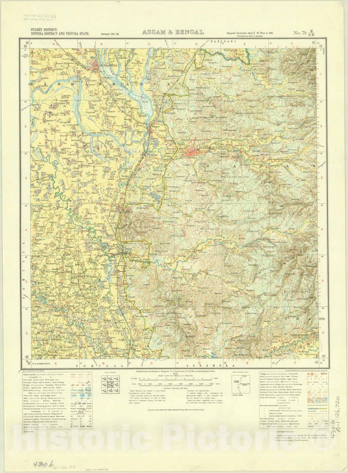 • .Map : Sylhet District, Tippera District and Tripura State, Assam & Bengal, No. 79 M/N.W. 1936, India and adjacent countries, Antique Vintage Reproduction