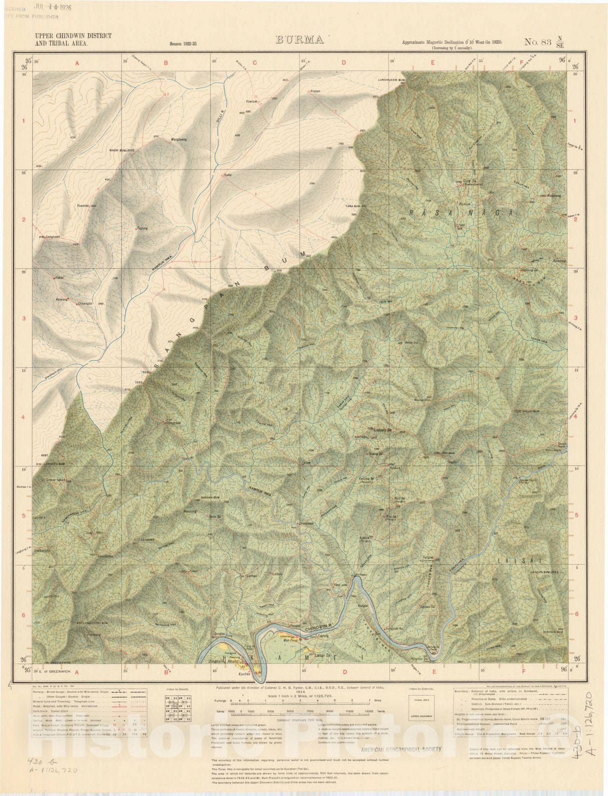 Map : Upper Chindwin District and Tribal area, Burma, No. 83 N/S.E. 1924, India and adjacent countries, Antique Vintage Reproduction