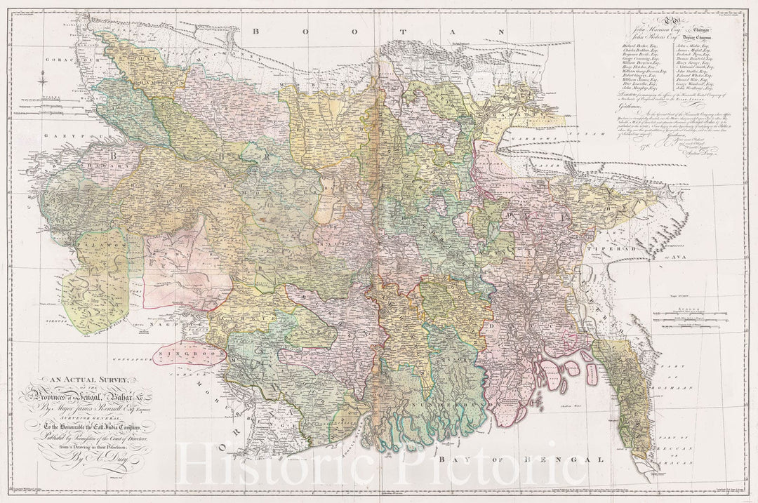 Historic Map : Rennell, Dury Wall Map of Bihar and Bengal, India, 1776, Vintage Wall Art