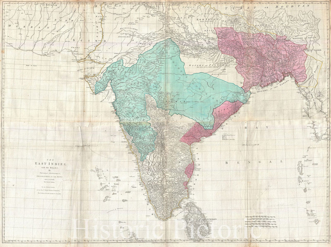 Historic Map : Jeffreys Wall Map of India and Ceylon, 1768, Vintage Wall Art