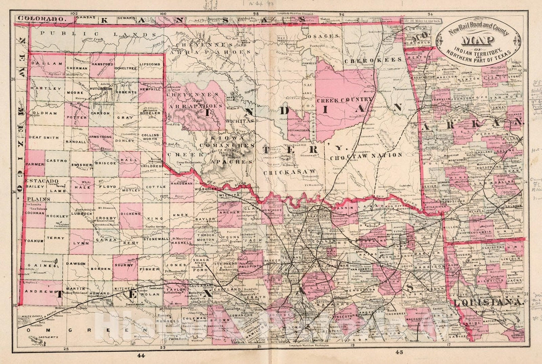 Historic Map : World Atlas Map, Indian Territory and Northern Texas. 1882 - Vintage Wall Art