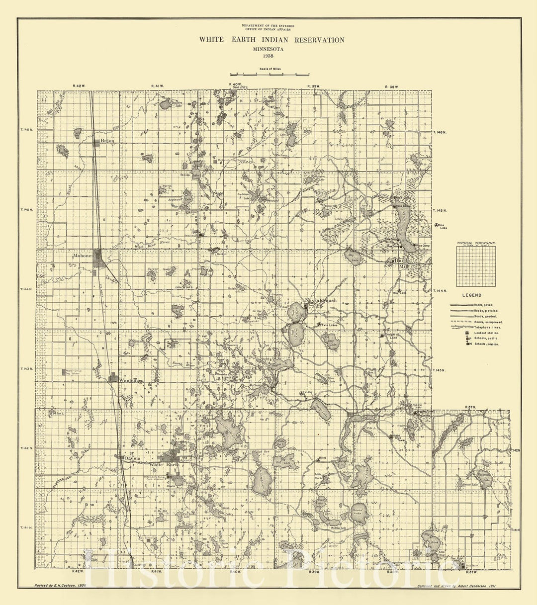 Map : White Earth Indian Reservation, Minnesota 1938, White Earth Indian Reservation, Minnesota 1938, Antique Vintage Reproduction