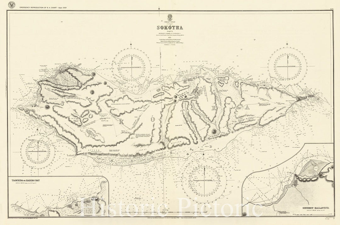 Map : Indian Ocean Soko?tra 1939, Indian Ocean Soko?tra , Antique Vintage Reproduction