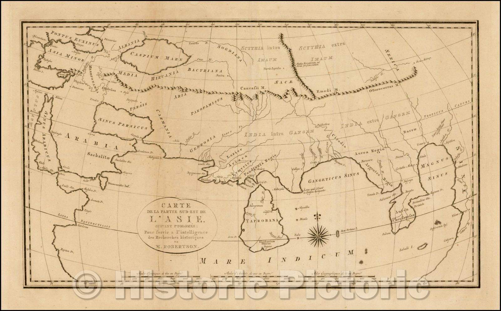 • .Historic Map - Carte de La Partie Sud-Est De L'Asie Suivant Ptolomee/Map of the Indian Ocean, based upon Claudius Ptolemy, 1792, William Robertson - Vintage Wall Art