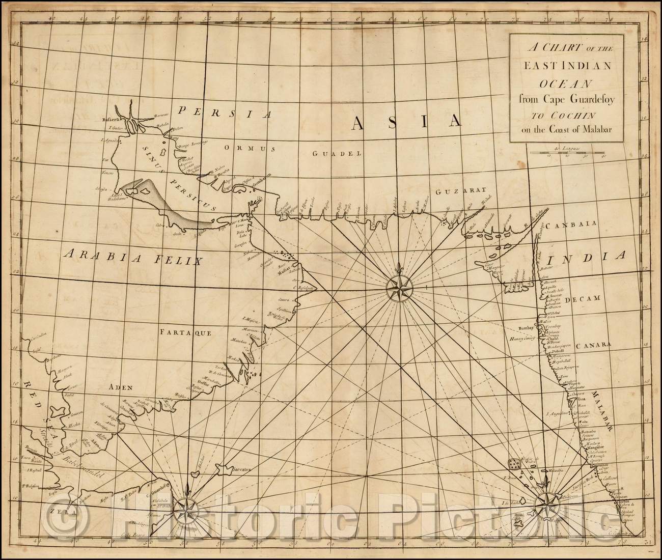 Historic Map - A Chart of the East Indian Ocean From Cape Guardefroy To Cochin on the Coast of Malabar, 1728, John Senex - Vintage Wall Art
