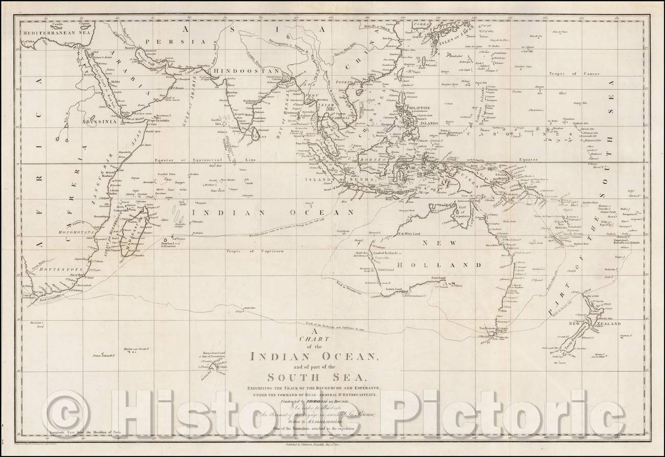 • .Historic Map - A Chart of the Indian Ocean, and of part of the South Sea, 1800, Jacques-Julien Houtou de LaBillardiere - Vintage Wall Art