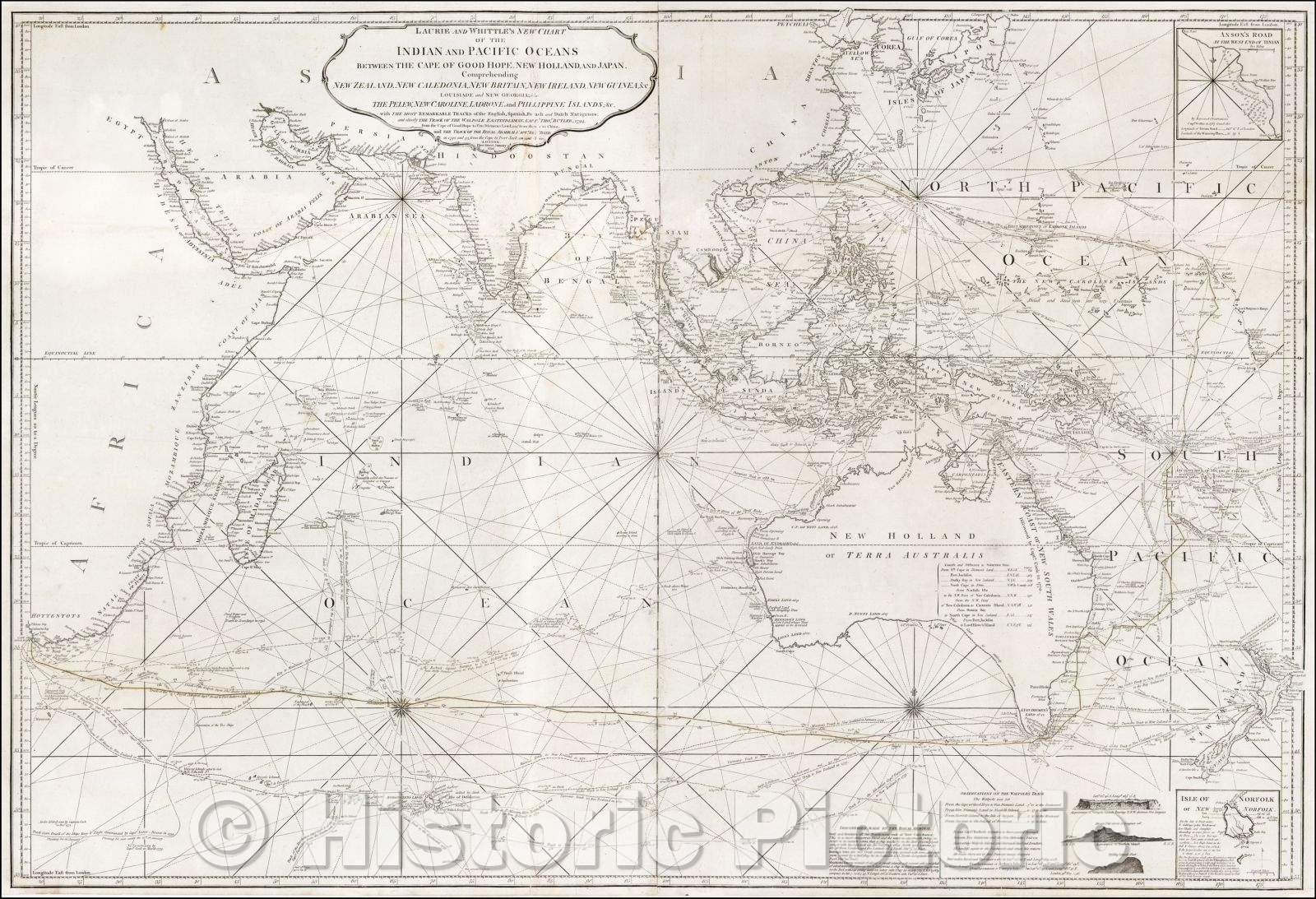 Historic Map - Chart of the Indian and Pacific Oceans Between the Cape of Good Hope, New Holland and Japan, New Zealand, 1794, Laurie & Whittle - Vintage Wall Art