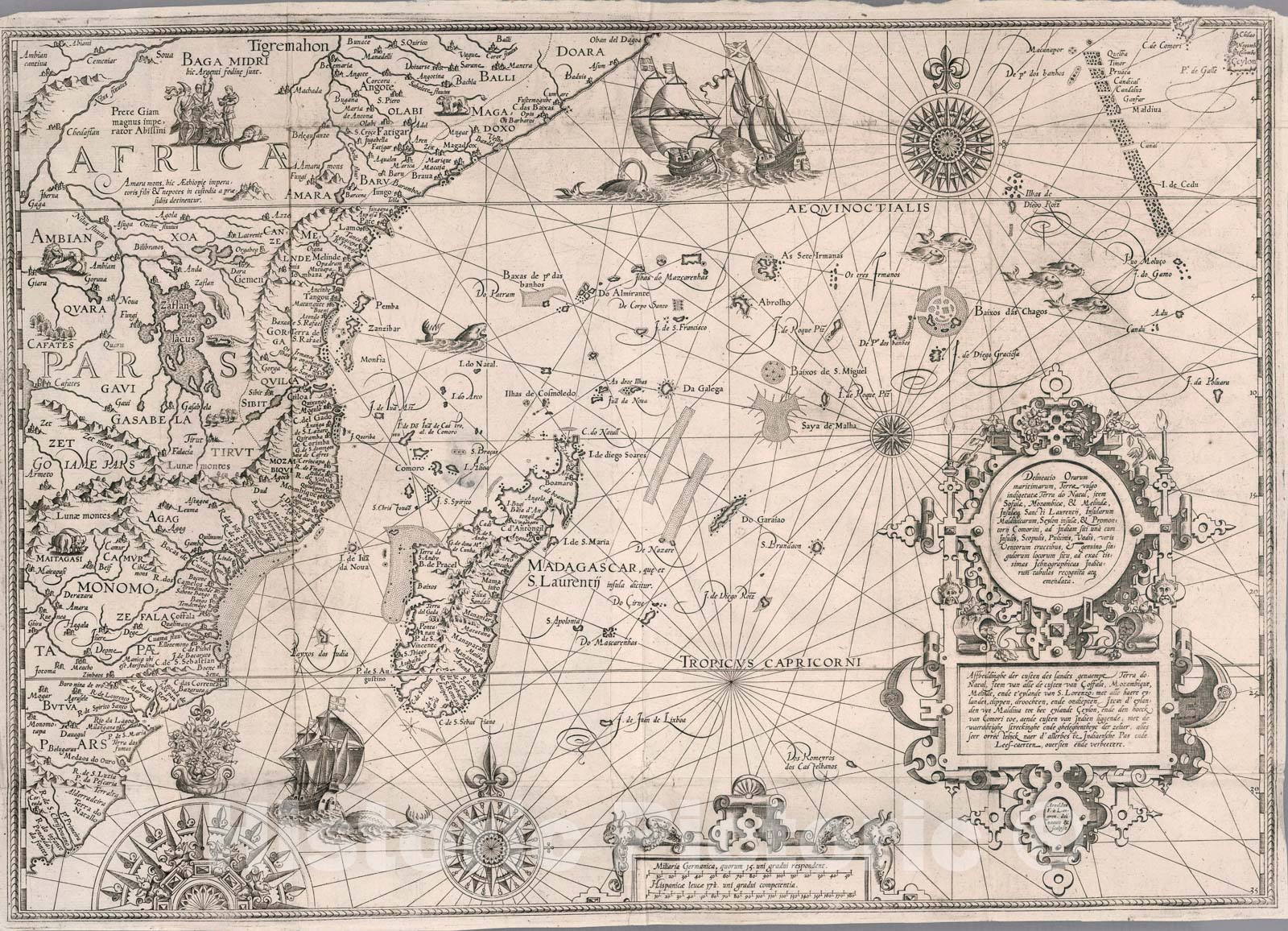 Historic Map : Indian Ocean. Delineatio Orarum maritimarum, Terra vulgo indigetata Terra do Naral, item Sofale, Mozambicae ...., 1595, Vintage Wall Art
