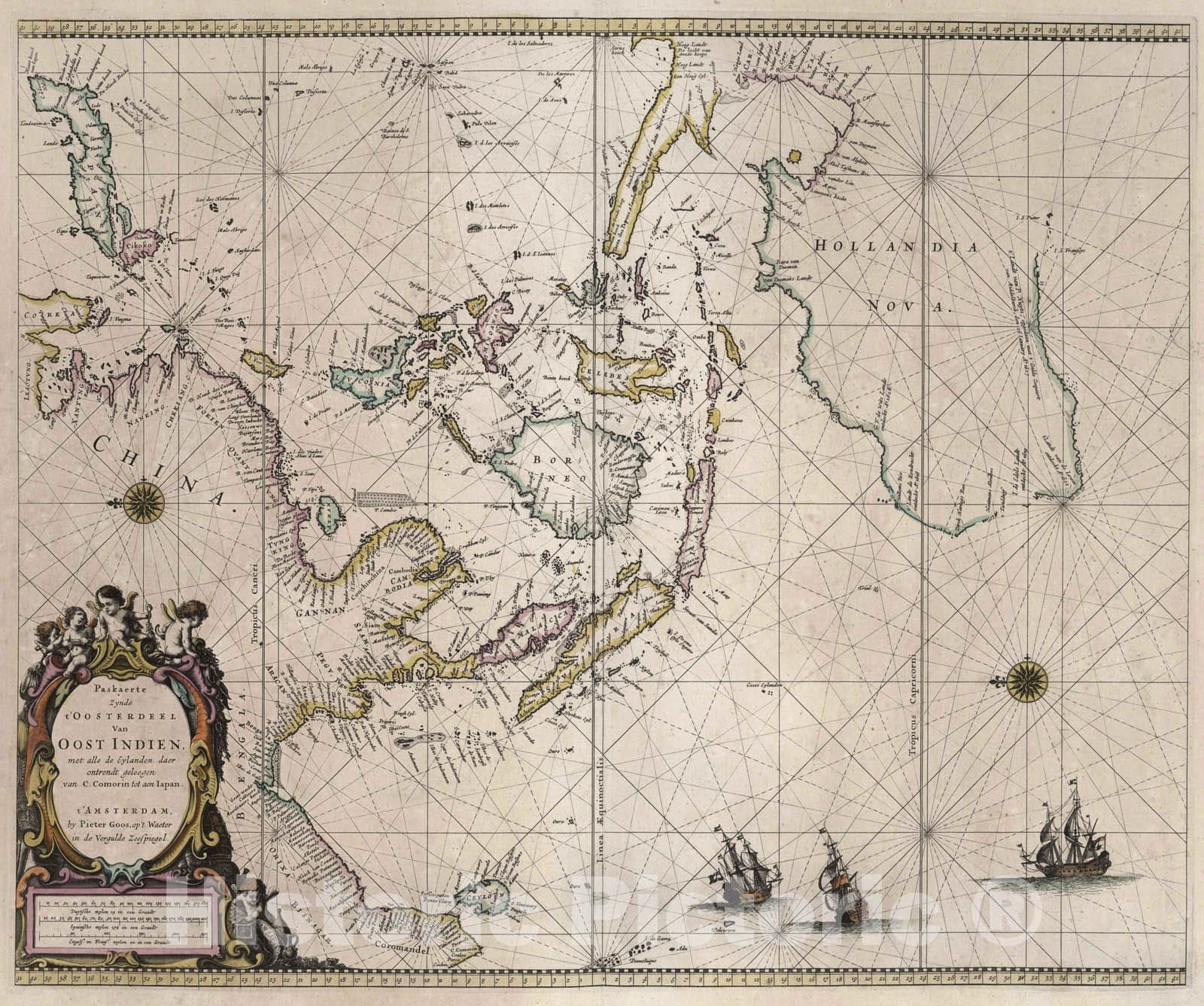 • .Historic Map : Indonesia, Southeast Asia, Indian Ocean 1667 Paskaerte Zunde t'Oosterdeel Van Oost Indien. , Vintage Wall Art