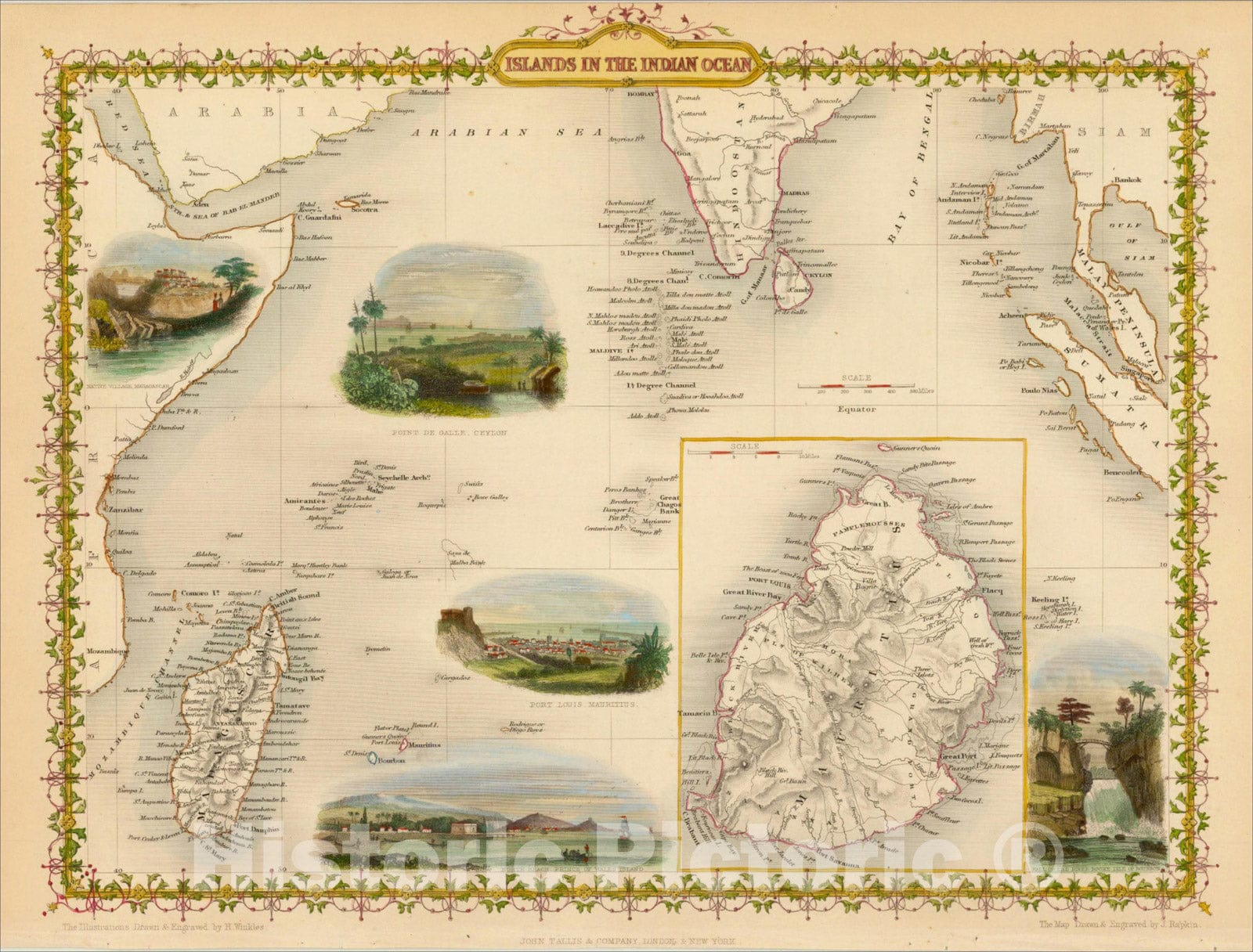 Historic Map : Islands in the Indian Ocean, 1851, John Tallis, v1, Vintage Wall Art