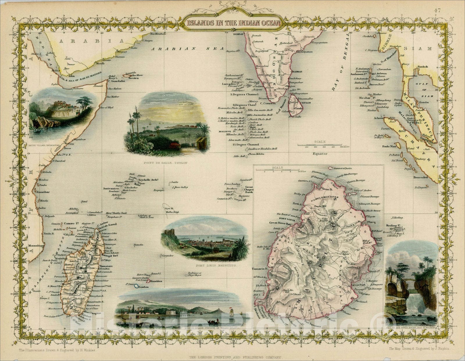 Islands in the Indian Ocean, 1851, John Tallis, v6, Vintage Wall Art :