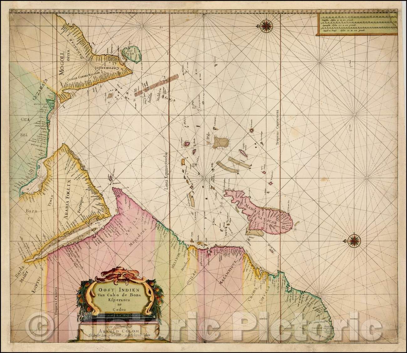 Historic Map - Oost Indien Van Cabo de Bona Esperanca tot Ceilon/Sea Chart of the western part of the Indian Ocean (Oost Indien), 1658, Arnold Colom - Vintage Wall Art