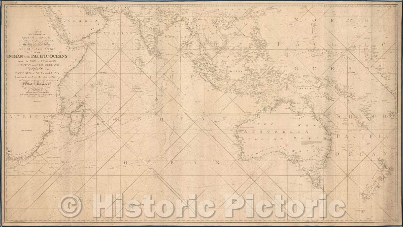 • .Historic Map - Trading to the East Indies Steel's New Chart of the Indian and Pacific Ocean, 1832, Penelope Steel - Vintage Wall Art