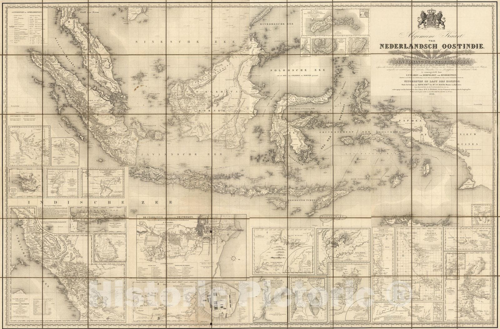 Historic Map : Indonesia, East Indies Case Map, Composite: (Sheets 1-8) Ugemeene Kaart van Nederlandsch Oostindie (East Indies). 1842 , Vintage Wall Art