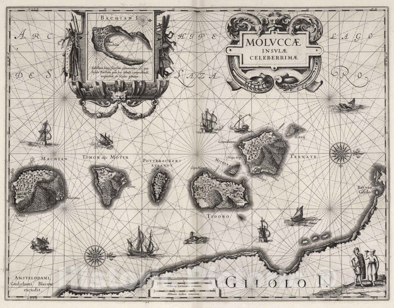 North Maluku (Indonesia) 1630 Moluccae Insula Celeberrimae. , Vintage Wall Art