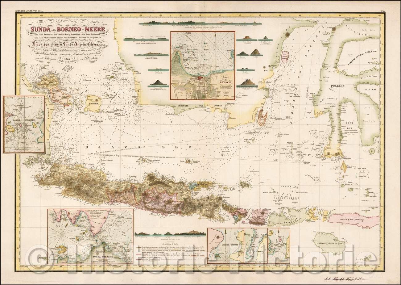 Historic Map - Reduzirte Karte vom Sunda Oder Borneo Meere und den Strassen zur Verbindung desselben/Map of part of Indonesia, 1835, Heinrich Berghaus - Vintage Wall Art