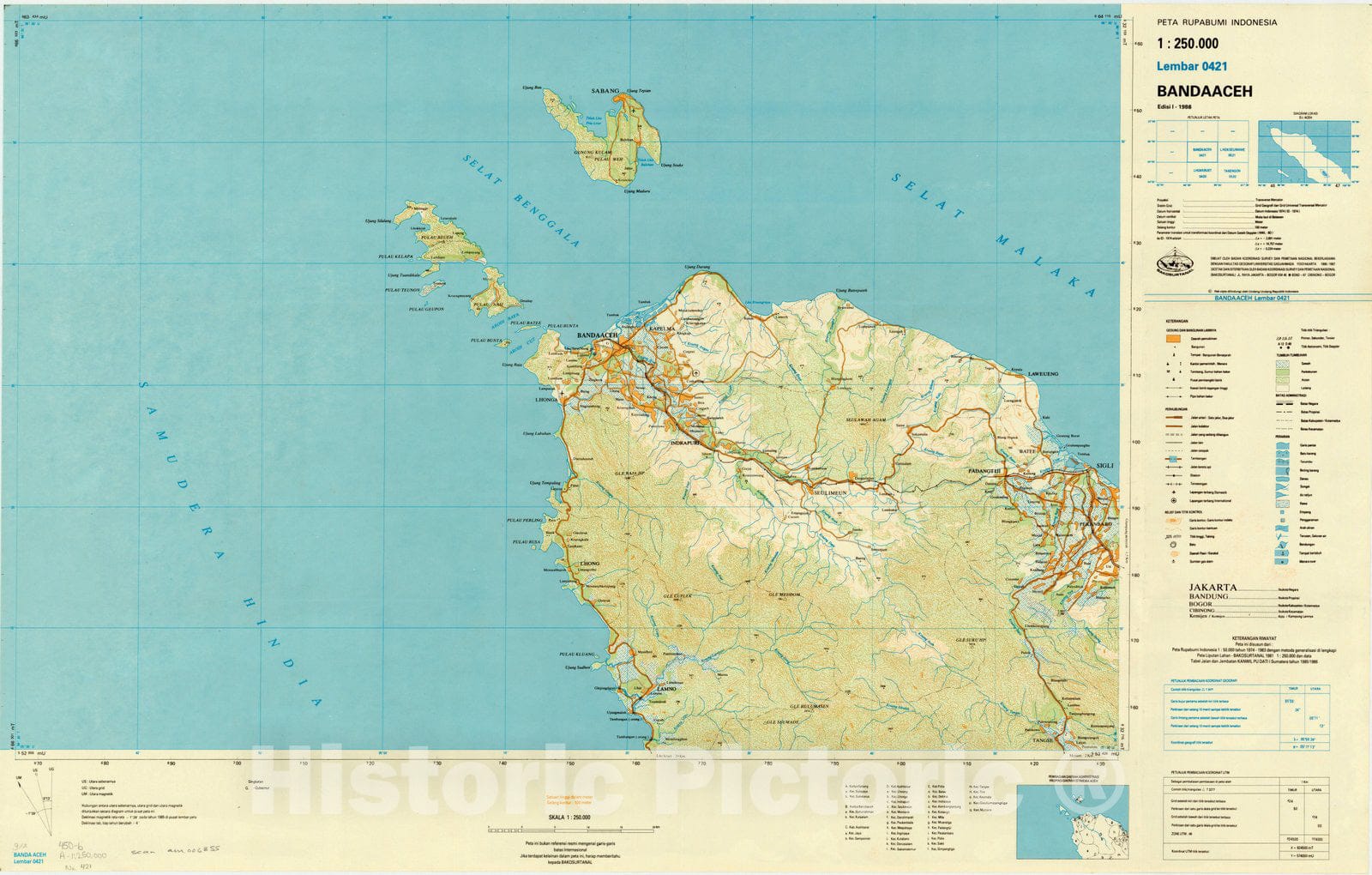 Map : Banda Aceh, Indonesia 1981, Peta rupabumi Indonesia, 1:250,000 , Antique Vintage Reproduction