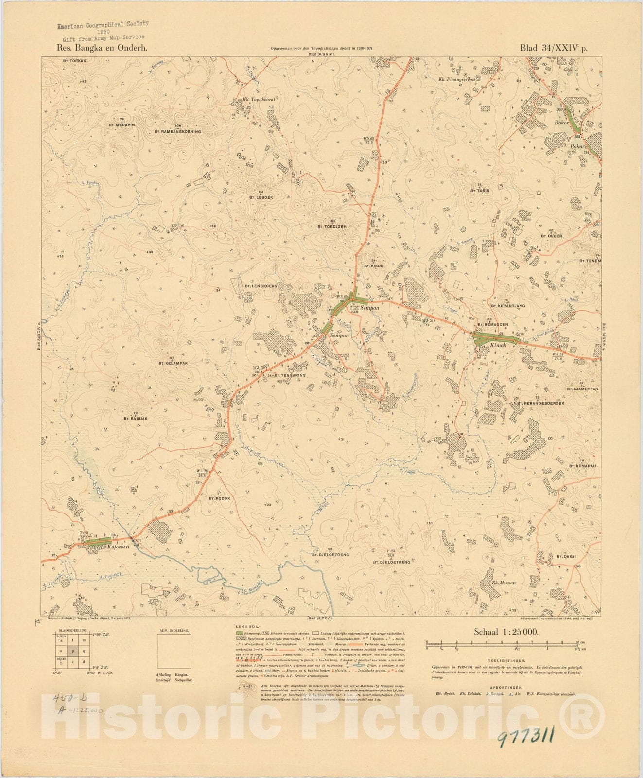 Map : Bangka Island, Indonesia 1935 21, Res. Bangka en Onderh : topografische en fotogrammetrische kaarterring, Antique Vintage Reproduction