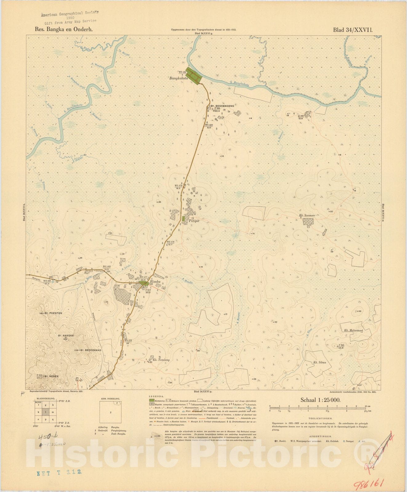 Map : Bangka Island, Indonesia 1935 10, Res. Bangka en Onderh : topografische en fotogrammetrische kaarterring, Antique Vintage Reproduction