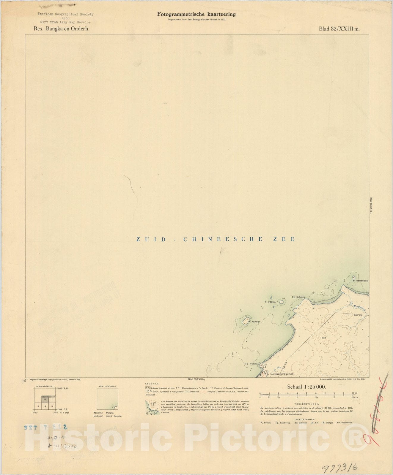 Map : Bangka Island, Indonesia 1935 5, Res. Bangka en Onderh : topografische en fotogrammetrische kaarterring, Antique Vintage Reproduction