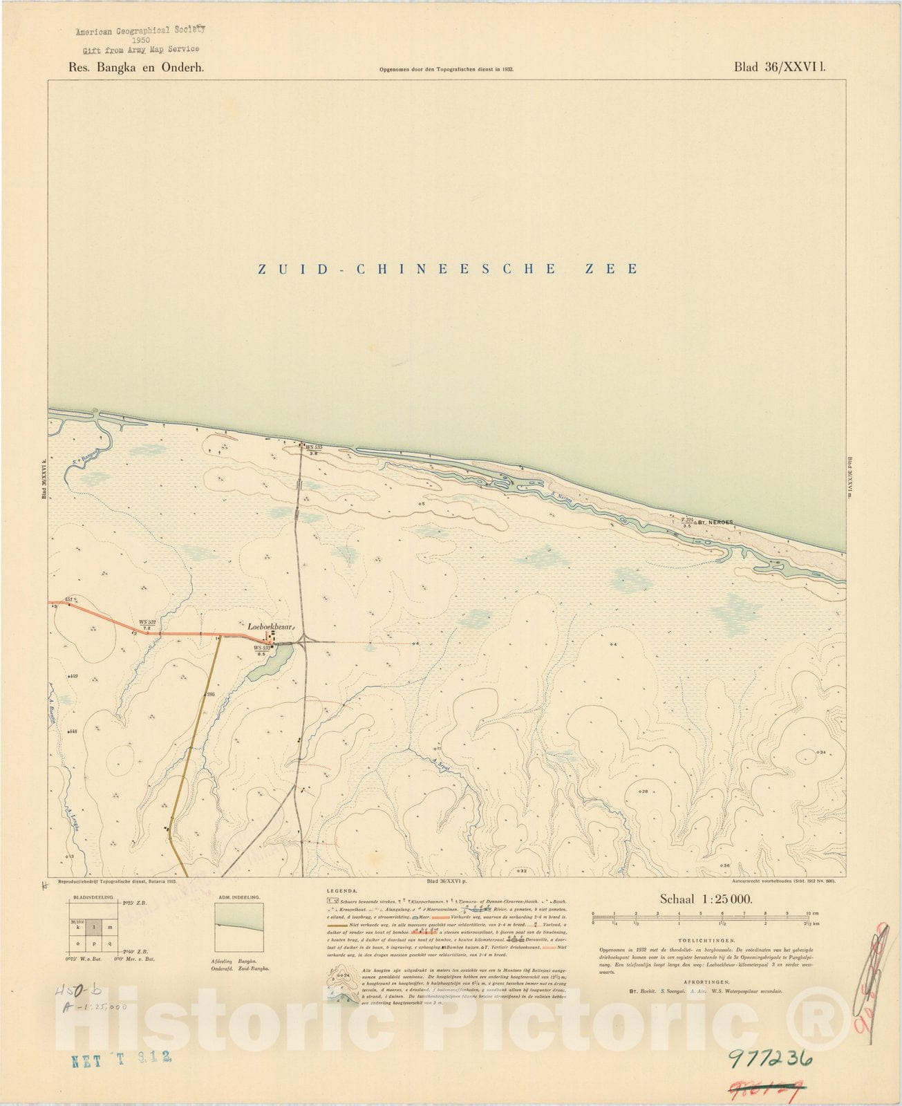 Map : Bangka Island, Indonesia 1935 9, Res. Bangka en Onderh : topografische en fotogrammetrische kaarterring, Antique Vintage Reproduction