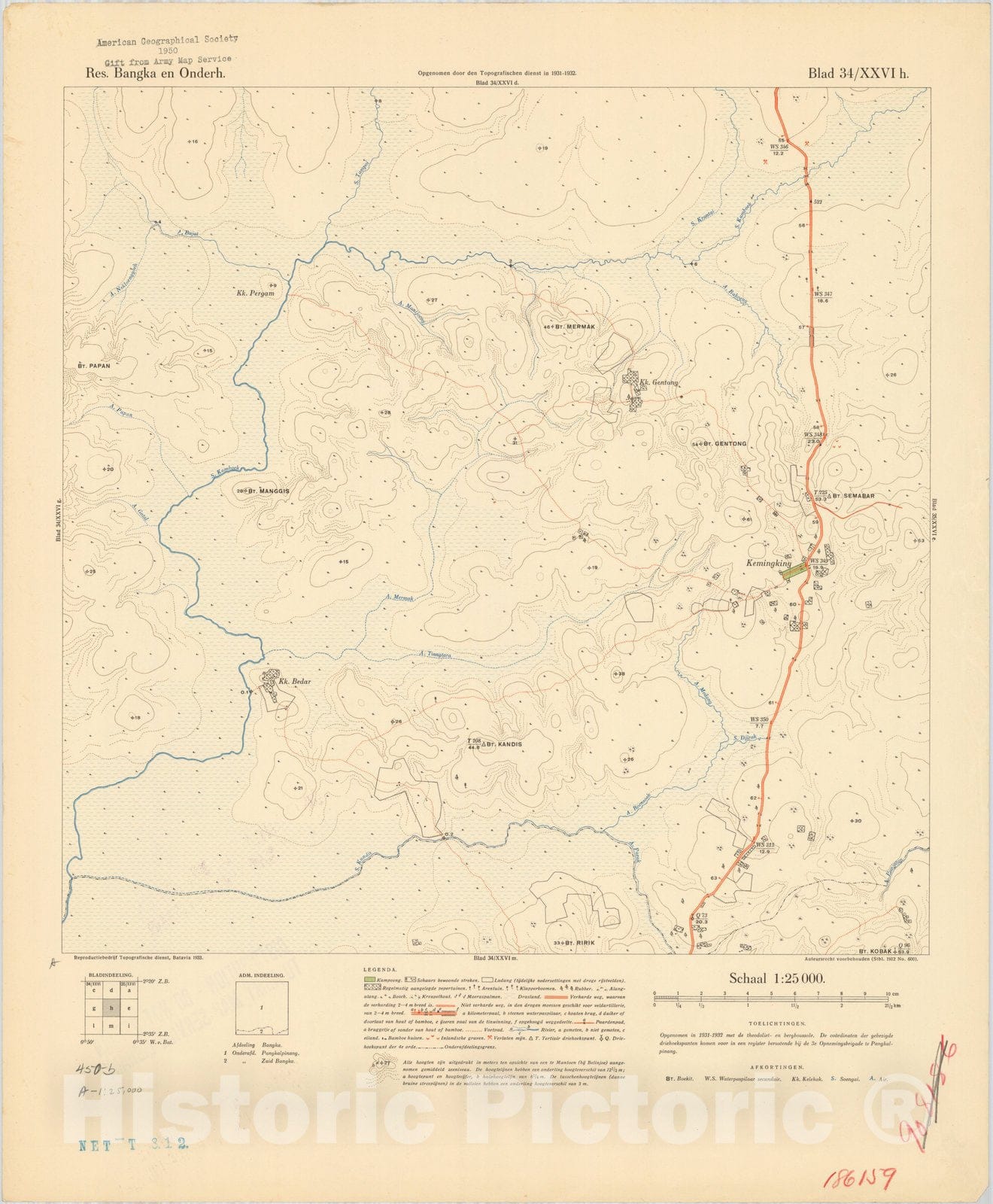 Map : Bangka Island, Indonesia 1935 12, Res. Bangka en Onderh : topografische en fotogrammetrische kaarterring, Antique Vintage Reproduction