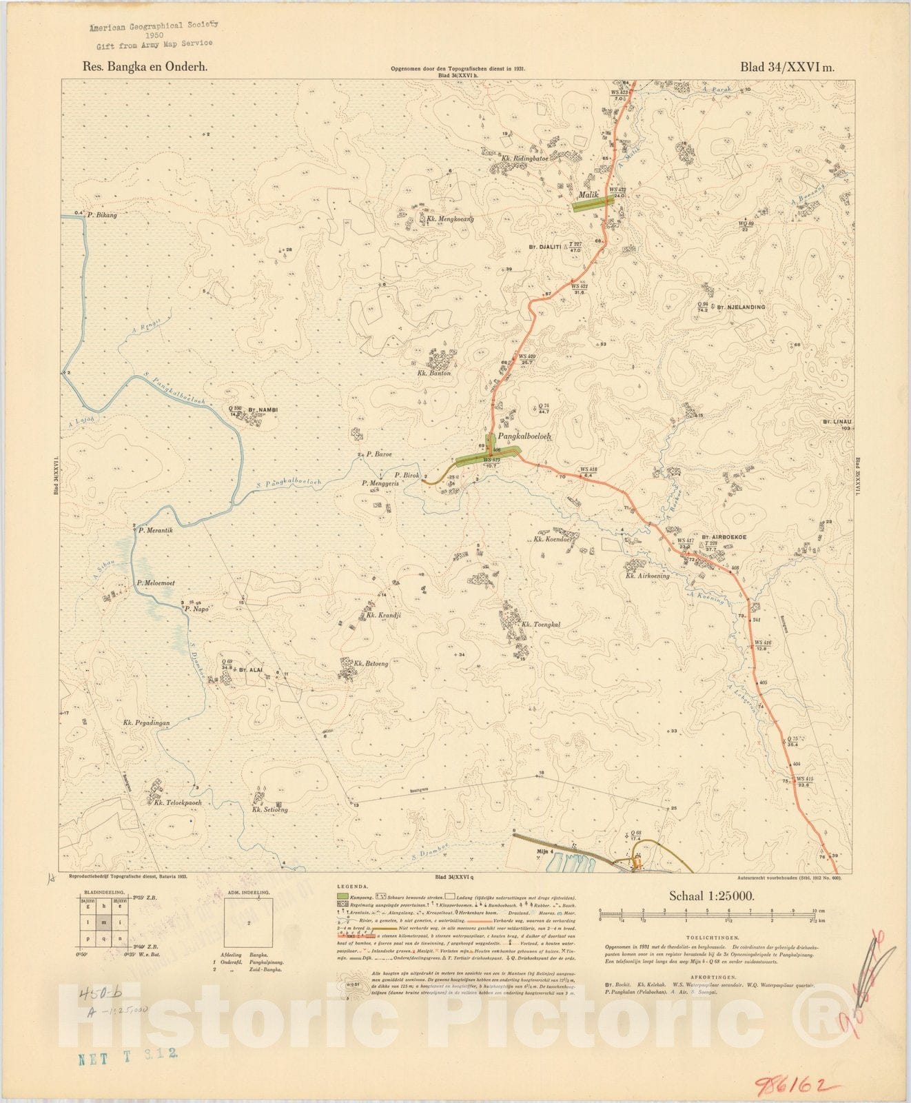 Map : Bangka Island, Indonesia 1935 14, Res. Bangka en Onderh : topografische en fotogrammetrische kaarterring, Antique Vintage Reproduction